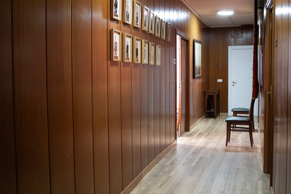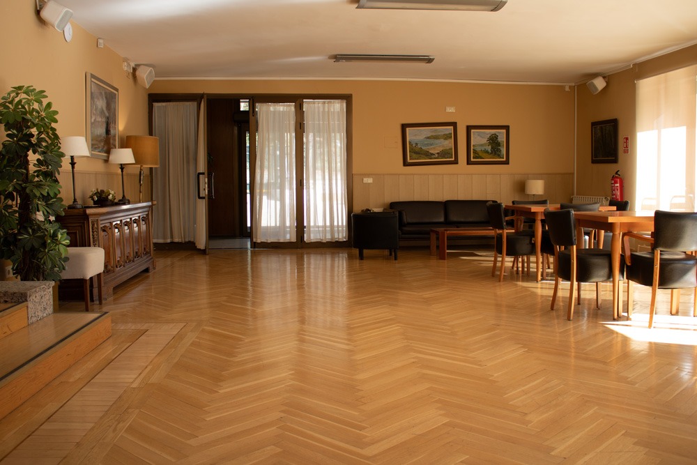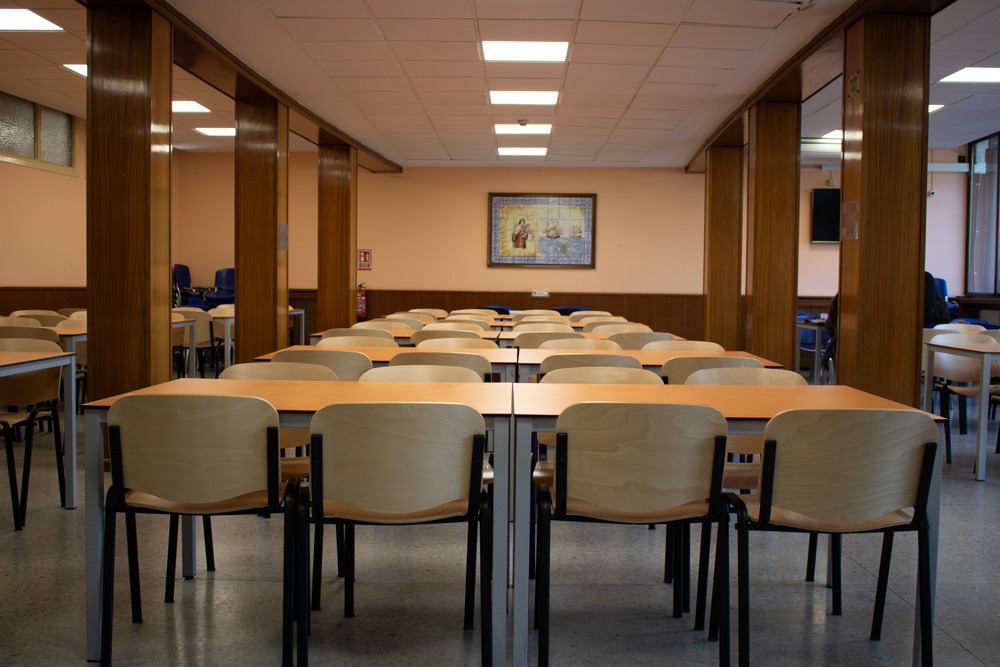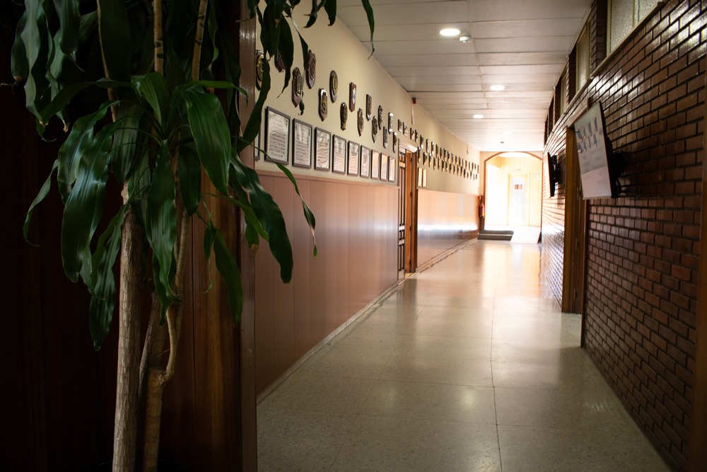 Servicios e instalaciones Pasillo de entrada Sala de estar Biblioteca Sala de estudio Gimnasio Salón de actos Comedor Cafetería Pasillo Dirección